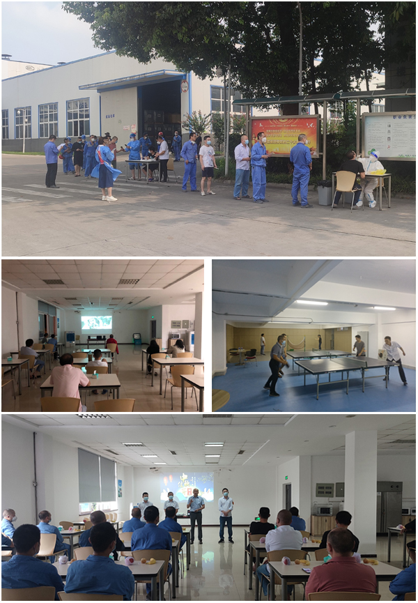 在閉環(huán)生產(chǎn)管理期間,公司主動聯(lián)系所在社區(qū),每日在公司廠區(qū)內(nèi)定點進行核酸檢測,時刻關(guān)注個人健康狀況。為舒緩員工閉環(huán)心理壓力,公司組織員工業(yè)余時間在員工活動室內(nèi)有秩序的分批鍛煉身體,每天晚上播放電影。在9月10日中秋佳節(jié)來臨之際,公司黨政工充分利用廠區(qū)內(nèi)條件,舉辦中秋節(jié)活動,讓員工感受到家的溫暖。正是通過這些有溫度的活動,豐富了廠區(qū)內(nèi)員工業(yè)余生活,讓大家能放松身心、緩解壓力。