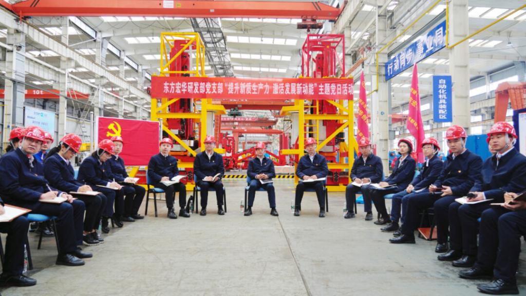 本網(wǎng)訊 4月9日,東方電氣集團(tuán)黨組書記、董事長俞培根參加聯(lián)系基層黨支部——東方宏華研發(fā)部黨支部“提升新質(zhì)生產(chǎn)力,激活發(fā)展新動(dòng)能”主題黨日活動(dòng)。研發(fā)部黨支部黨員代表、青年代表和黨外人士代表參加活動(dòng)。活動(dòng)采取沉浸式與互動(dòng)式相結(jié)合的方式,在東方宏華零部件車間現(xiàn)場(chǎng)開展。