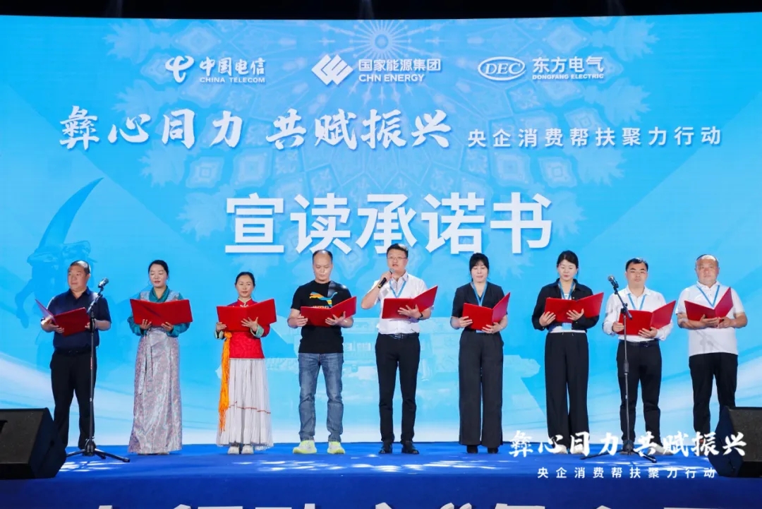 本網(wǎng)訊 4月19日上午,由國務(wù)院國資委社會責(zé)任局指導(dǎo),東方電氣集團(tuán)、國家能源集團(tuán)、中國電信聯(lián)合主辦的央企消費(fèi)幫扶聚力行動之“彝心同力,共賦振興”購物節(jié)活動,在四川省涼山彝族自治州正式開幕。 國務(wù)院國資委社會責(zé)任局副局長柳長森,東方電氣集團(tuán)黨組成員、副總經(jīng)理孫國君,國家能源集團(tuán)黨組成員、總會計師馮來法,四川省國資委黨委委員、副主任何政,涼山州人民政府副州長馬小合出席開幕式并致辭。相關(guān)中央企業(yè)、定點幫扶縣代表以及合作伙伴共同參加此次活動。